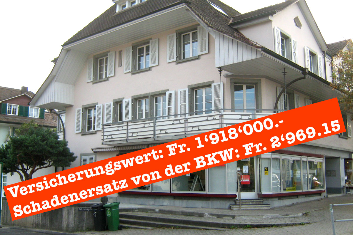 Zerstörter Wert der angenommenen Immobilie CHF 1 Mio.